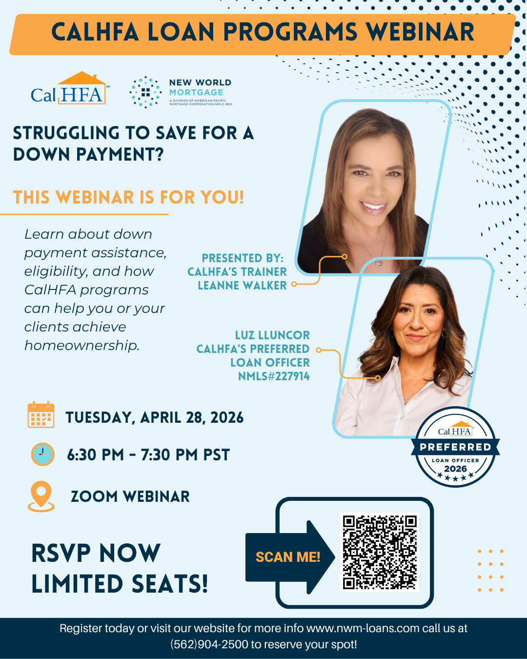 This session is perfect for first-time homebuyers, real estate professionals, and anyone interested in understanding down payment assistance and financing options through CalHFA.